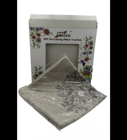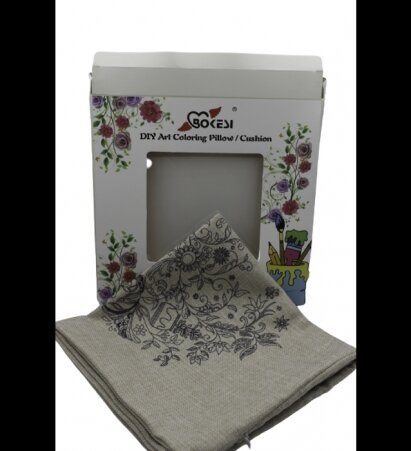 כרית מבד יוטה עם ציור לצביעה או רקמה. ניתן לצבוע עם צבעי בד.